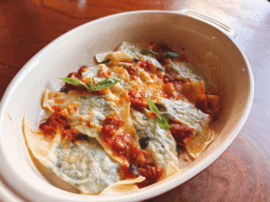 ・パンニセッリトスカーニ(ほうれん草とリコッタチーズを詰めたラビオリのオーブン焼き)